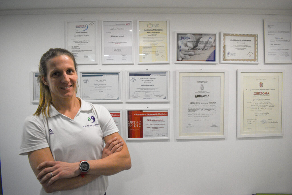 Bogato iskustvo je stekla u dugogodišnjem radu sa decom, adolescentima i odraslima. Poseban akcenat stavlja na individualni pristup, pa samim tim postiže zapažene rezultatu u svom radu. Znanje stečeno na Fakultetu sporta i fizičkog vaspitanja, uz sportsko iskustvo. Pored sportskog iskustva je stekla i zvanje višeg fiziotarapeuta. Dodatno se usavršavala po principima svetskih akreditovanih tehnika:Cyriax, Mulligan concept, Maitland concept, Neurokinetic therapy, Triggerpoint, Dry needling, Kinematic Taping.